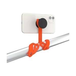 This mount is flexible. When PopSockets says you can bend it in any number of ways, they aren’t joking. The mount that I was sent is covered in tangerine rubber and it’s my understanding that the inside is a wire frame. I do find that when I bend the mount into a particular position, it stays exactly how I put it — I have no fear when it comes to that.